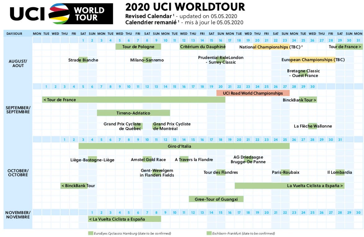 Regarding the races, I generally would be only too happy to go back to the old norm. I love the ebb and flow of the traditional calendar, moving from southern Europe to the north in the springtime before moving to the Tour in July. The problem has always been that after the Tour we sort of lose the plot. I thought the Strade Bianche in August was great and why not Il Lombardia? I like the Worlds in late September, but August with the Classica San Sebastian, Strade Bianche and Lombardy would lead perfectly into the Canadian Grand Prix races and provide a great run-up to worlds, while the Vuelta provides an alternative path.