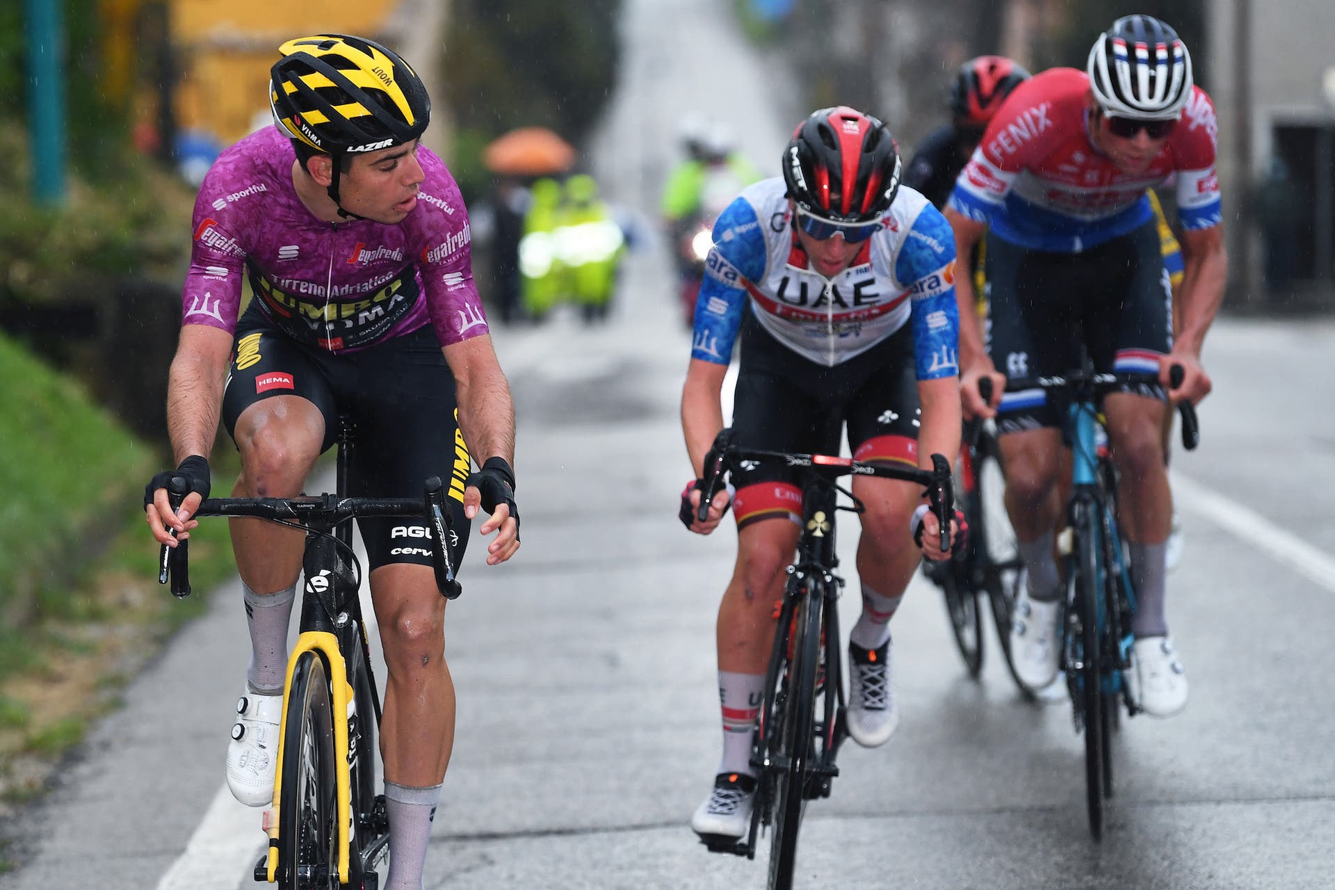 “Pogačar, together with my teammate Primož Roglič, is the best all-rounder of the moment. It is only logical that he takes over my jersey,” van Aert said Saturday.